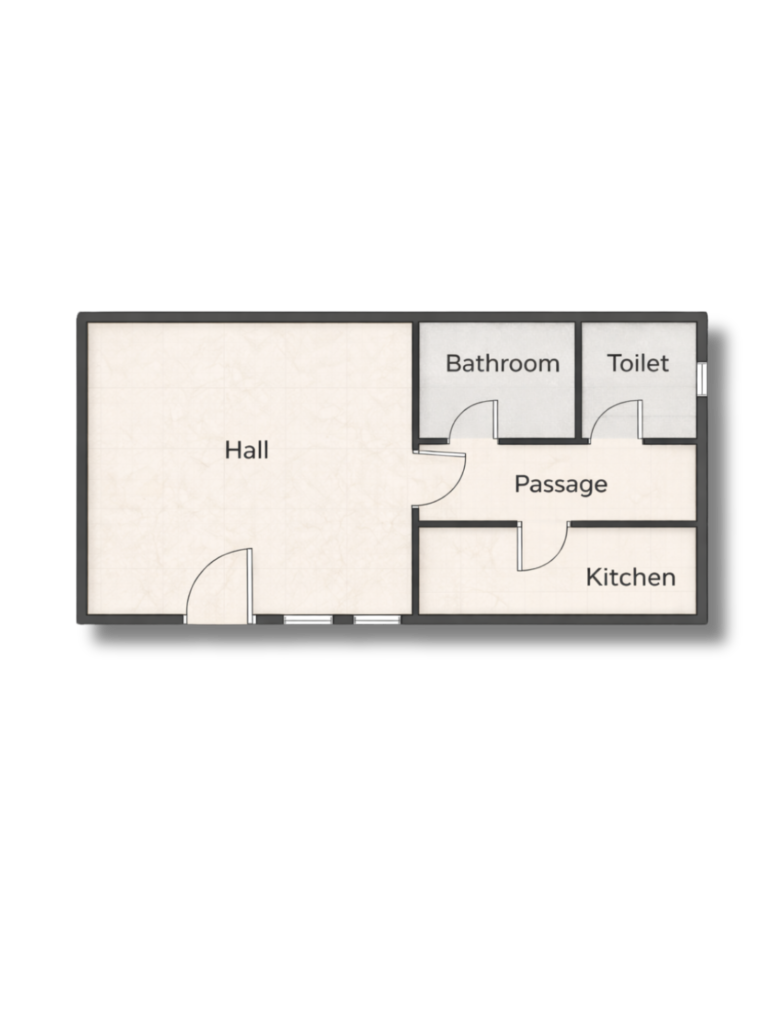 blend of smart space planning, comfort, and functionality. Each home features a well-organized living and sleeping area, a practical kitchen layout, and separate washroom and bathroom spaces for added convenience.